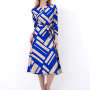 Платье Esthetic Code Stefania бежевый синий электрик геометрия на запах твил атлас